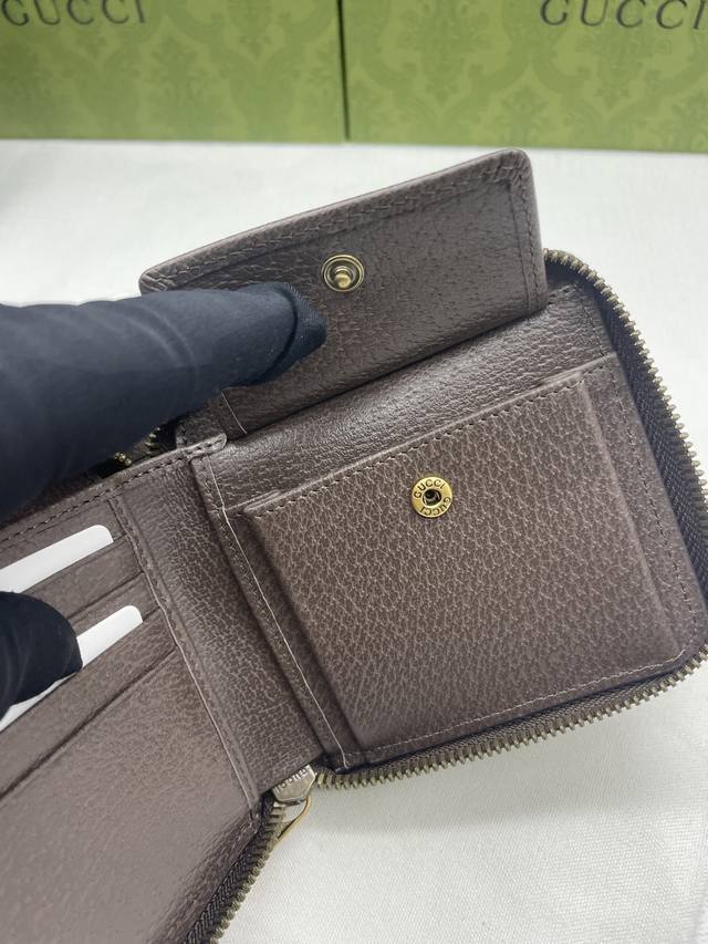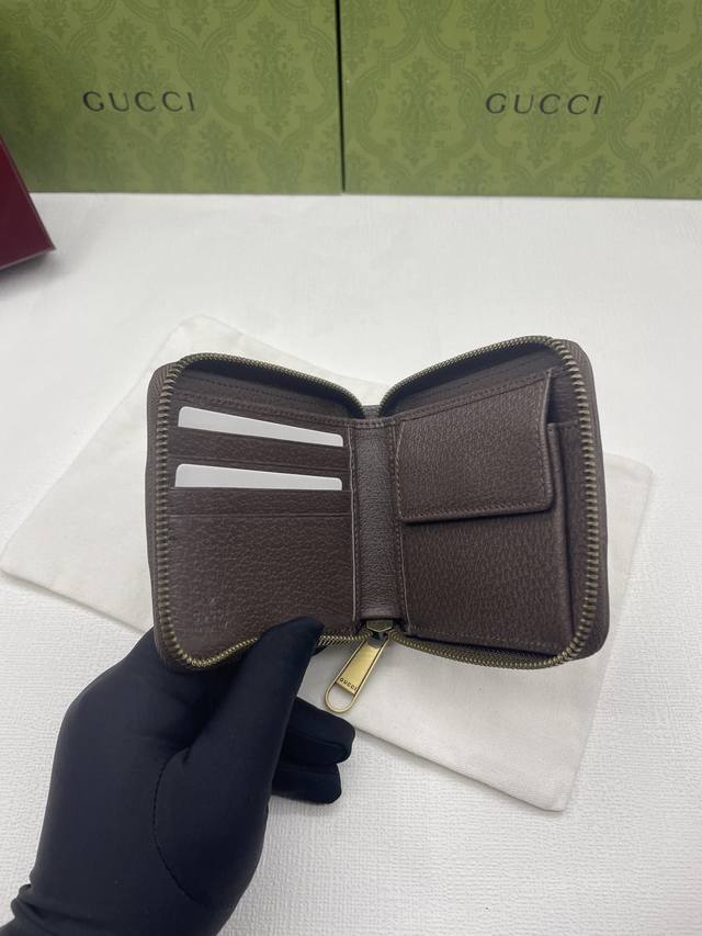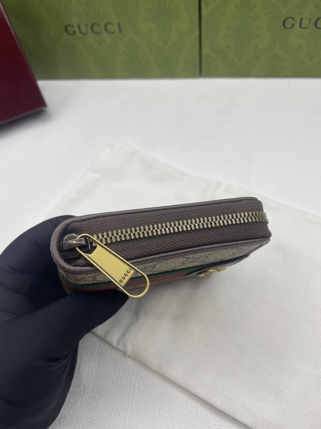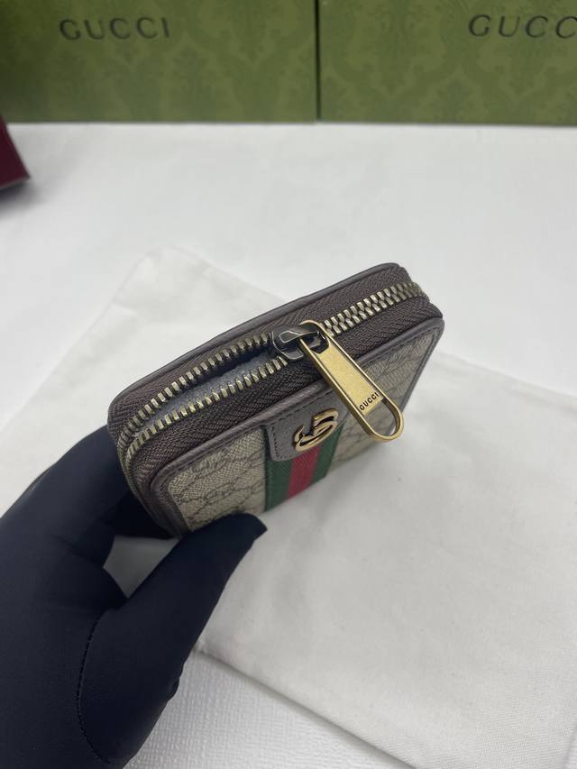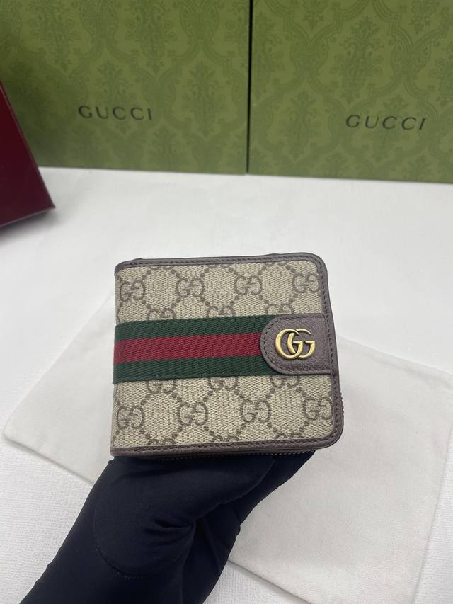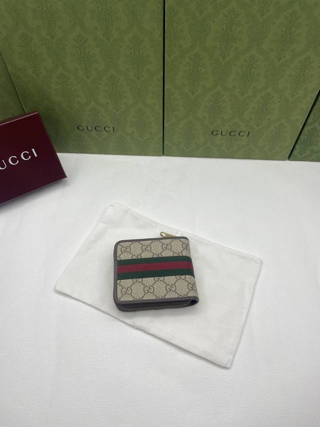 New arrival, same style as on the official website! Ophidia series short zip wallet, made of Gg Supreme original factory pigskin top-grain cowhide with PVC and the iconic double G hardware mark, classic red and green webbing, and high-end cotton cloth zipper