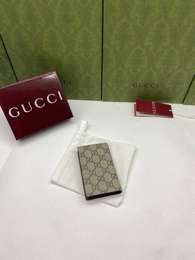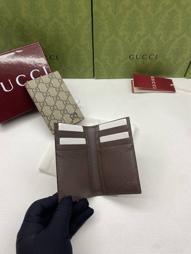 Premium genuine leather Gg long card holder with Gg details, packaged in a red box. Gg collectible elements and details are cleverly blended with vibrant colors. This long card holder is crafted from Gg Supreme canvas, subtly incorporating red contrasting details, bringing a delicate beauty of contrast to this small everyday accessory. Model: 768249. Open dimensions: 12cm (L) x 15cm (W). Closed dimensions: 12cm (L) x 7.5cm (W). Colors: Brown PVC / Brown Leather.