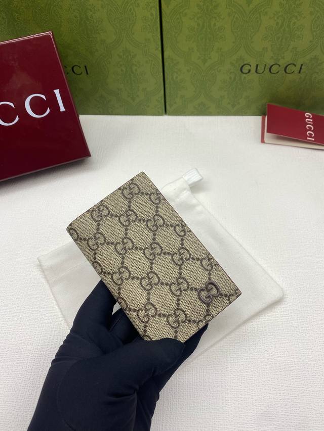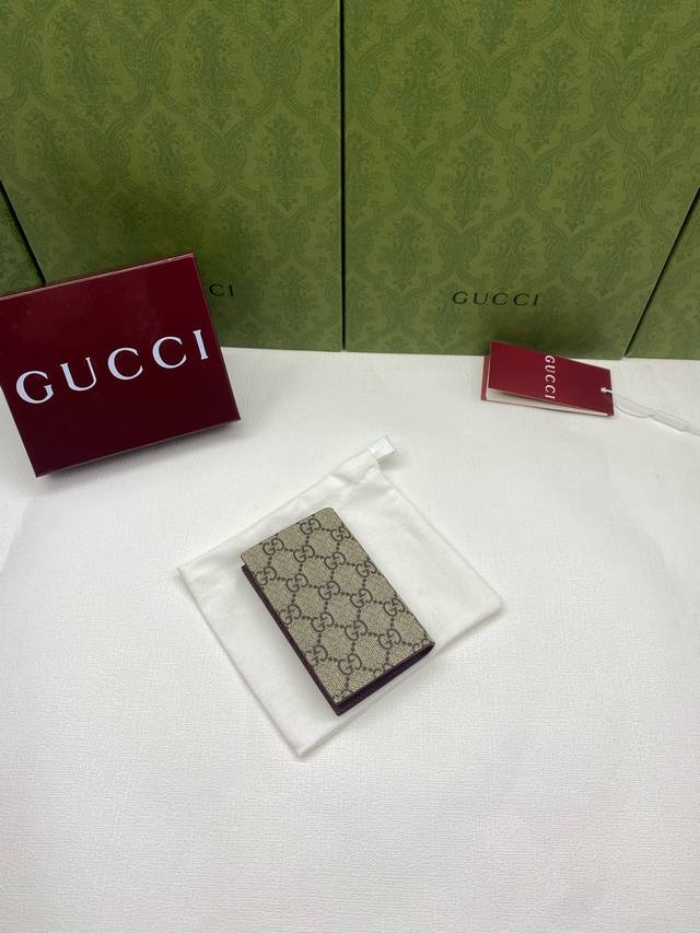 Premium Original Leather Long Card Holder with Gg Details, Comes with Red Box. A clever blend of classic Gg elements, Gg details, and vibrant color schemes. Crafted from Gg Supreme canvas, this long card holder subtly incorporates red contrasting details, adding a delicate beauty of contrast to this small everyday accessory. Model: 768249. Dimensions when open: 12cm (L) x 15cm (W). Dimensions when closed: 12cm (L) x 7.5cm (W). Colors: Brown PVC / Red Leather.
