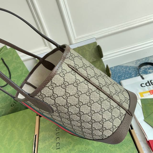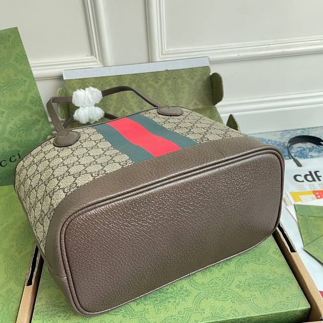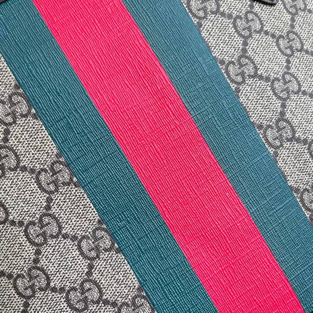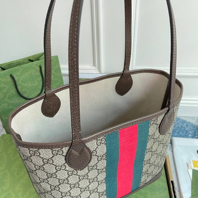 This Ophidia tote is crafted from classic beige and ebony Gg Supreme canvas, accented with red and green striped Web. Beige and ebony Gg Supreme canvas