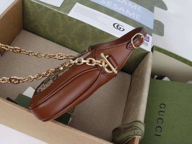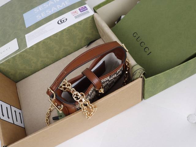 This bag perfectly integrates canvas, Swarovski crystals inlaid with Gg, a full copper hardware chain, a sheepskin lining, and the shoulder strap has been replaced with a more refined metal chain, perfectly showcasing the uniqueness of this bag.