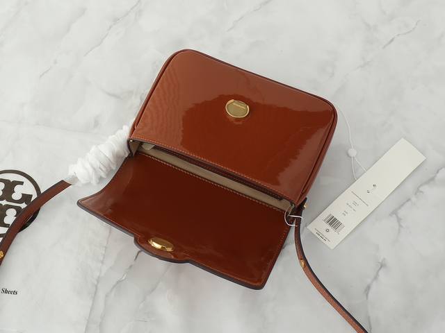 Original quality, new style messenger bag series, pay attention to details for new products~ Tory Burch's new Robinson series messenger flap bag, a two-way shoulder bag, made of exquisite Spazzolato patent leather with smooth, rounded edges. Classic and versatile style, suitable for everyday use! Dimensions: Base length 21cm, Width 6cm, Height 15.5cm.