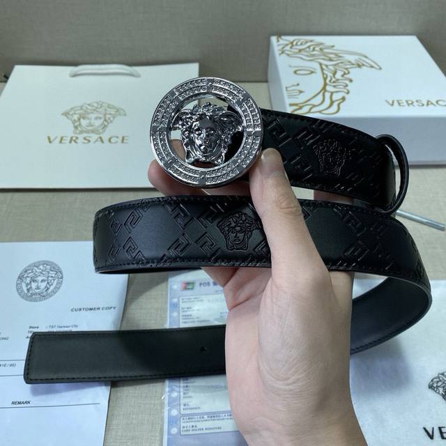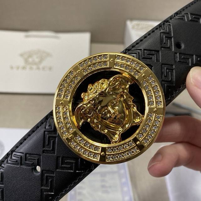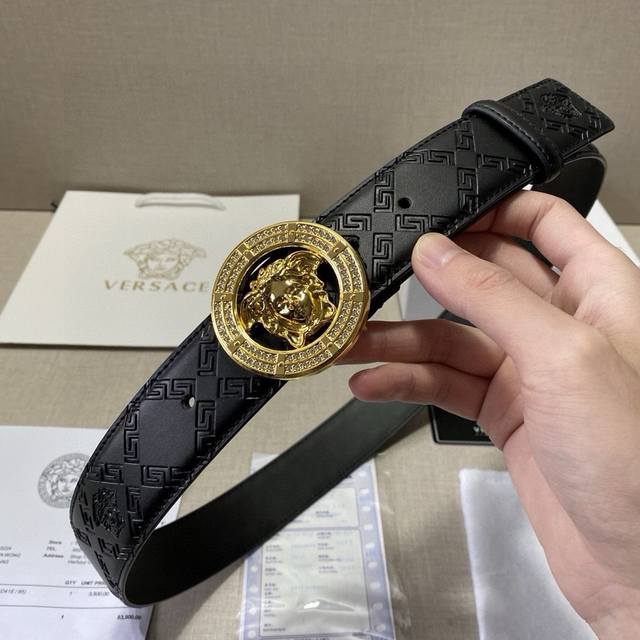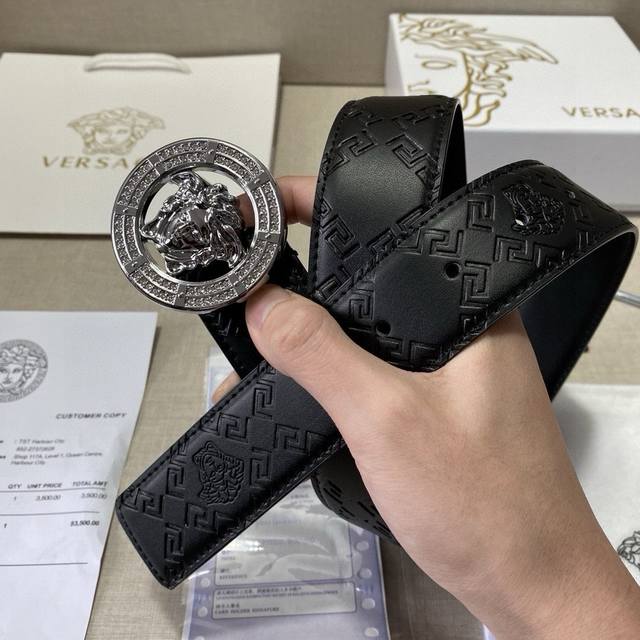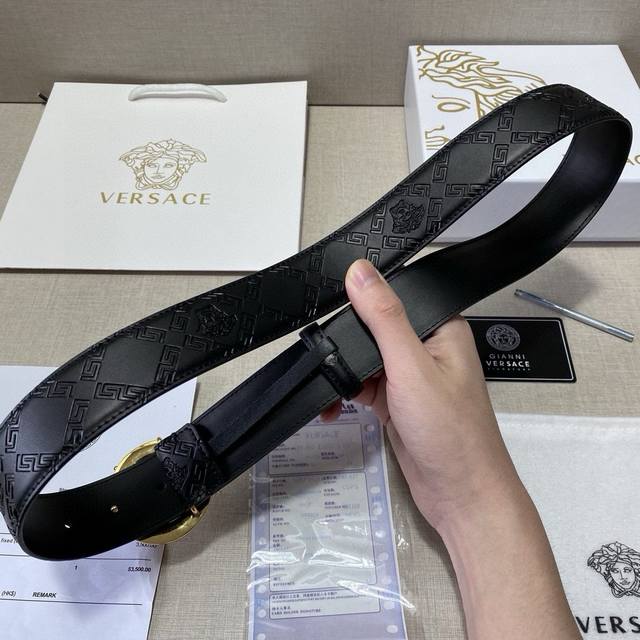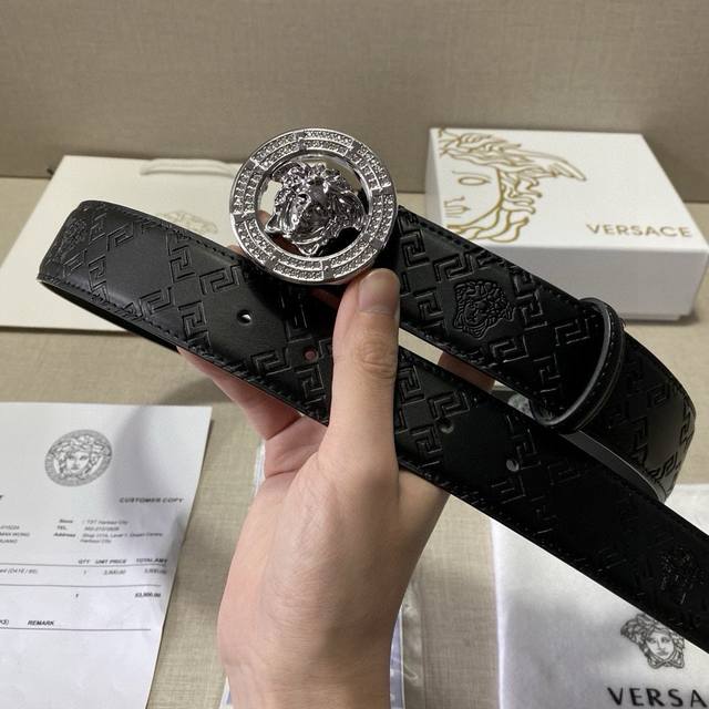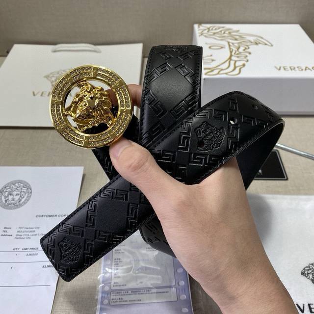 Grade: Custom-made cowhide leather, newly designed mold. 3.8cm width. Finely polished edges, computer-cut stitching. Photographed in real life, looks great without modifications. Comes fully packaged with a Versace case. Gift and surrender belts come with an optional eyelet needle.