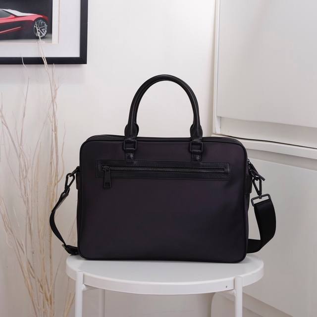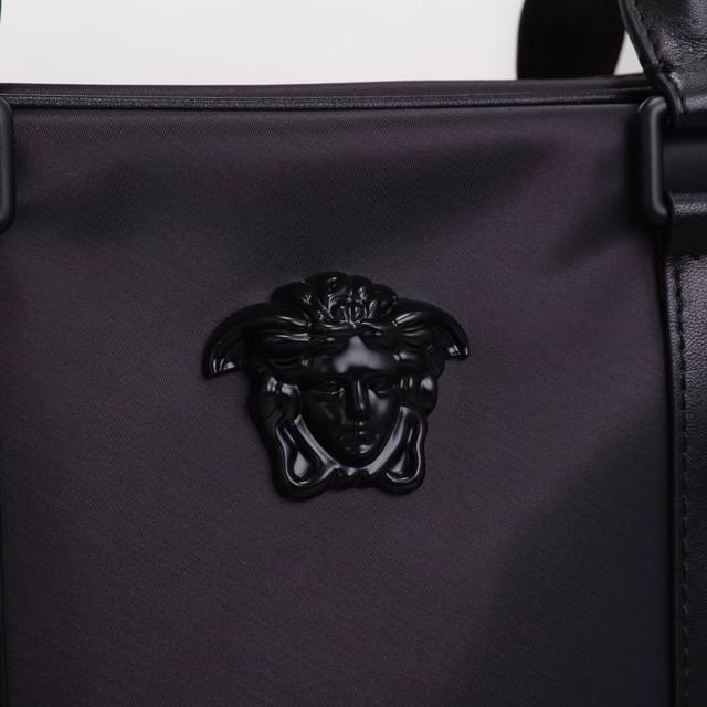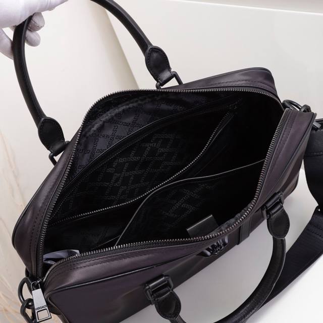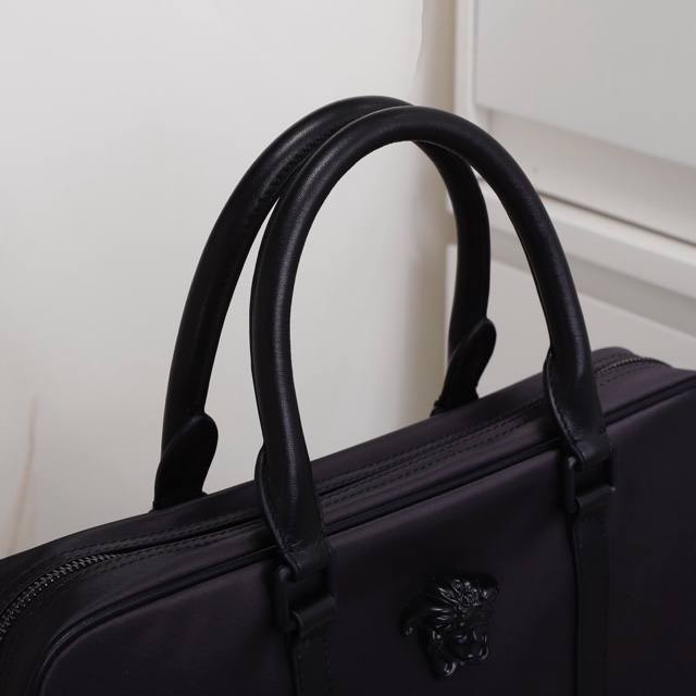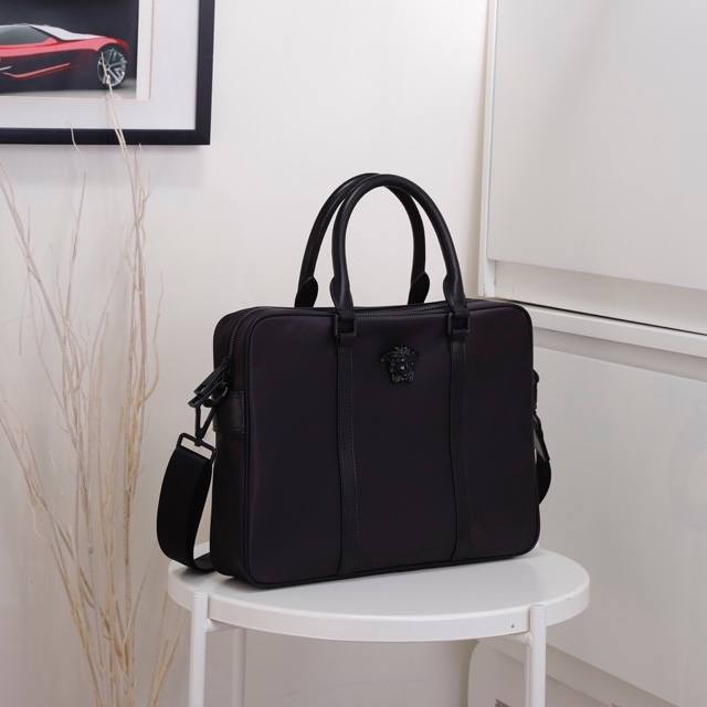 Original Versace briefcase, new from the overseas store. A highly coveted bag, this exceptionally well-made, true to the original. Made from imported waterproof fabric and Italian calfskin. Handcrafted by top-tier craftsmen, this bag maintains high-end quality and features a stylish, casual design. Lightweight and practical. 82641-1B Size: 36.5-28-7