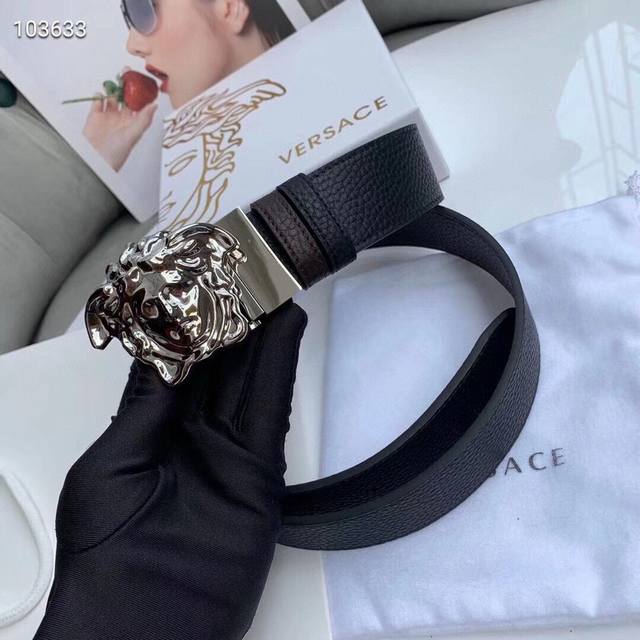 Versace 3.8cm double-sided original leather, steel buckle, the body uses the latest counter elements, two-tone original style, elegant and glossy, 100% imported cowhide, the buckle is made of pure steel construction, durable, never fade, and shows class and taste. Paired with the new buckle, it is fashionable and versatile, and looks great on the body, whether casual or business. The first choice for gifts or personal use! Hot style, share the picture now