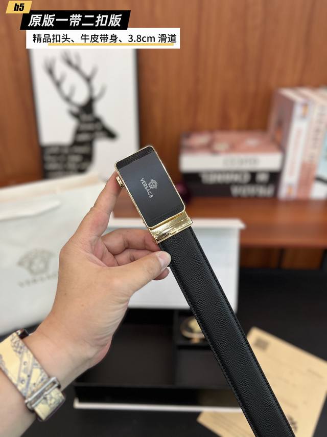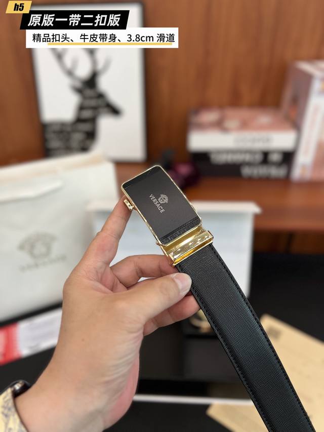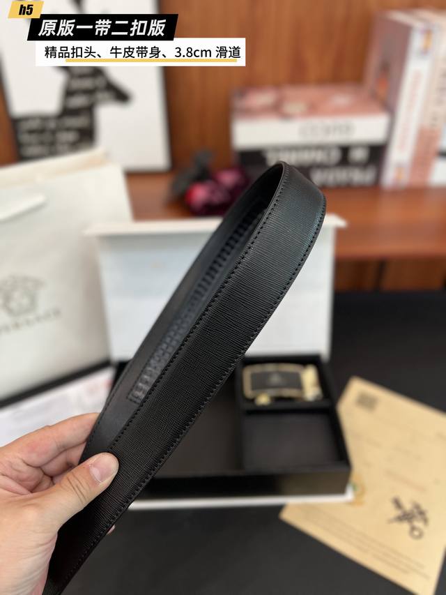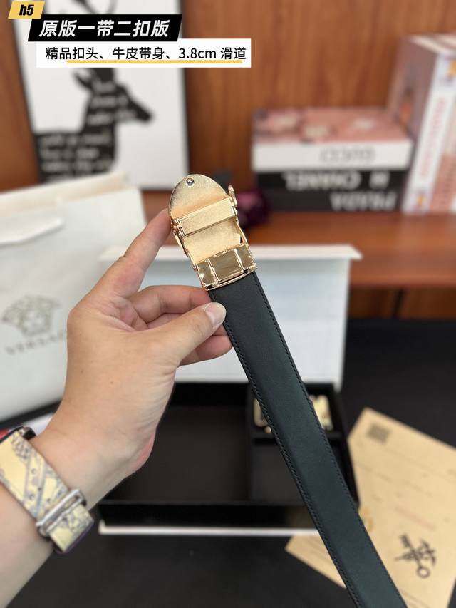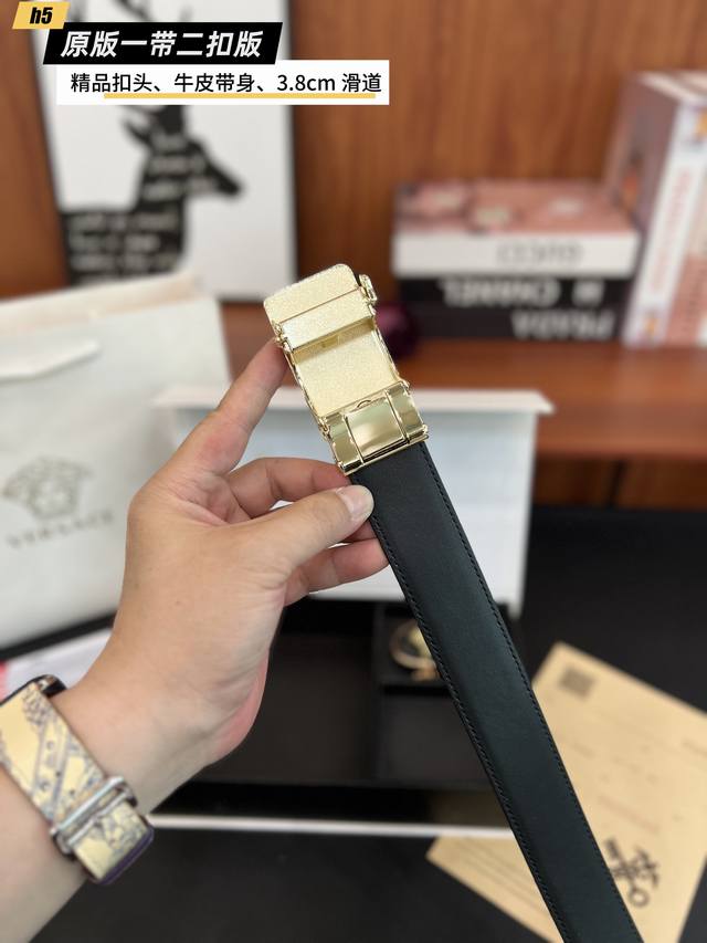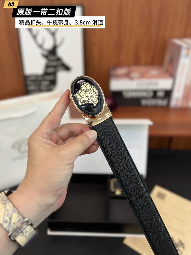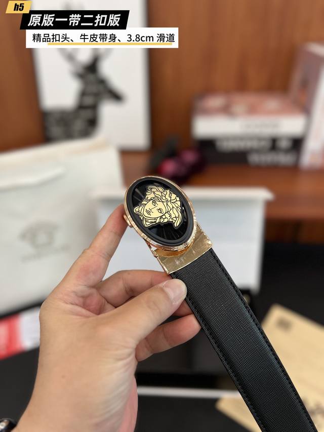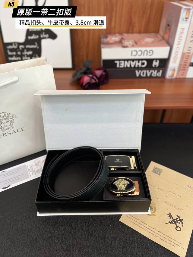 With 1 Buckle, 1 With 2 Buckles, Versace, Double Buckle Version, Slide Track, 1 With 2 Buckles, Genuine Molded. This Belt Features A Double-Sided Genuine Leather Strap And Precision-Plated Signature Hardware Buckles, Matching The Official Store Version. 3.8 Cm. Wooden Box Available For An Additional 40.