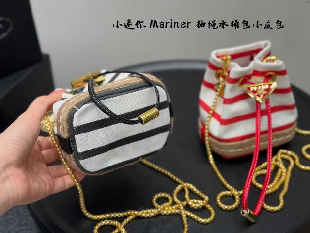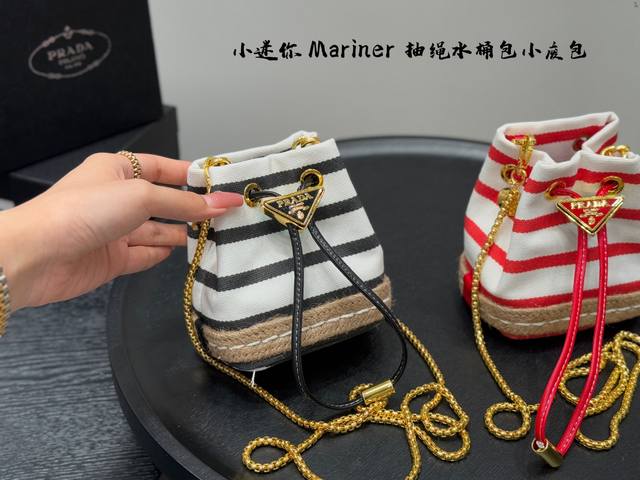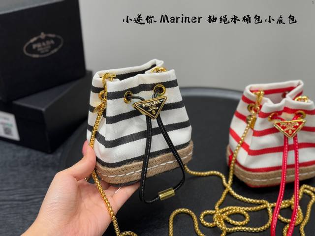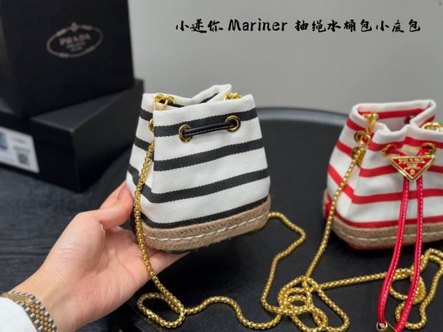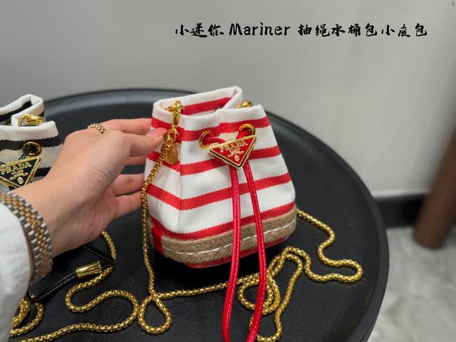 Prada | Mini Mariner drawstring bag is so cute that it is suffocating. Chain small bucket