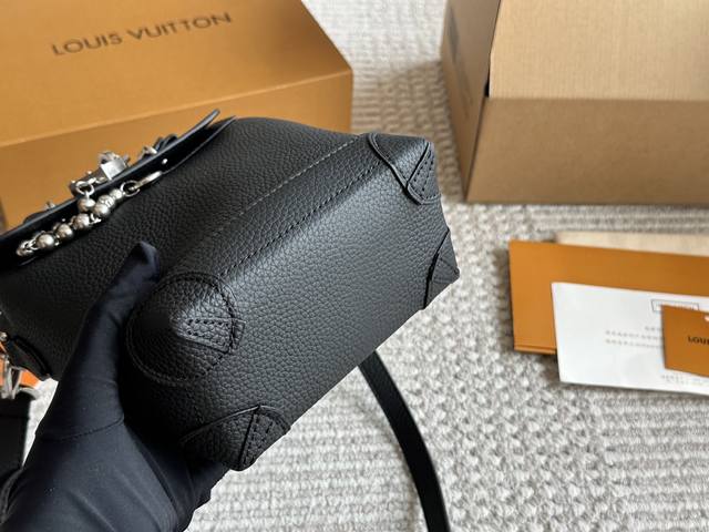 Steamer 15 handbag, which is convenient to carry with a compact configuration. The front lock is engraved with the Louis Yuittonmarque Deposee logo, which complements the bead chain design. Fasten the adjustable leather shoulder strap and switch between shoulder and crossbody at will. This Steamer 15 handbag makes the wallet size present the trendy configuration of the Steamer handbag, and then continues the traditional elements with the top handle, reinforced corners and base, showing Pharrell Williams's smart ingenuity. The non-functional padlock expresses the Louis . Vuittonmarque Deposee logo, replacing the series' usual chain and pin closure.