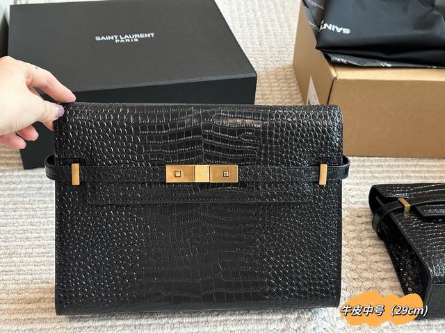 Comes with box, plain weave. Size: 29*20cm (medium), 24*17cm (small). YSL Manhattan leather version. It feels so good to carry. Manhattan is the most understated, simple and elegant! The size is just right!