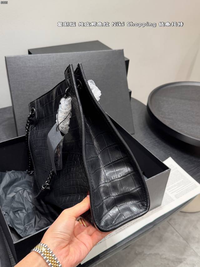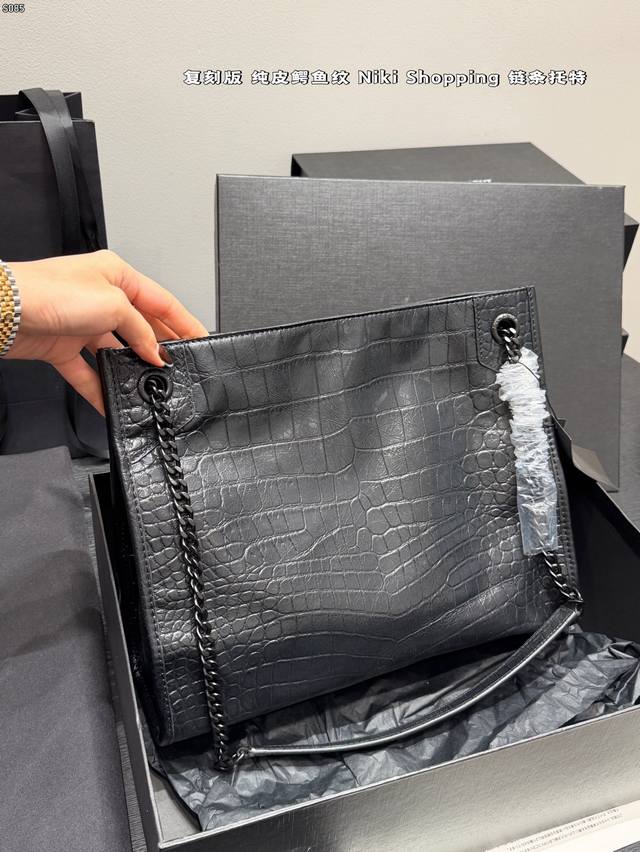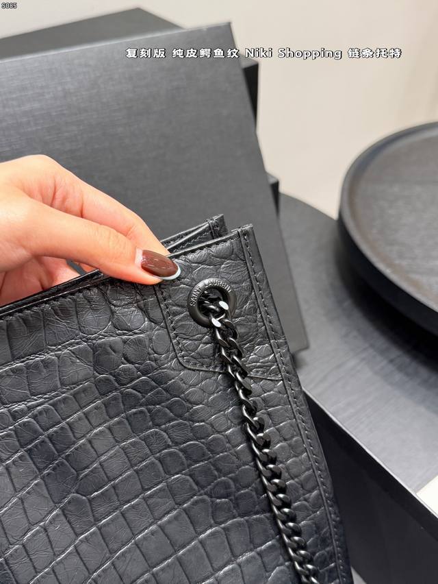 Gift Box Packaging DDD Replica Genuine Leather Crocodile Pattern DDD Size 33*26 DDD YSL Saint Laurent Niki Shopping Bag Crocodile Pattern Tote Bag DDD A classic Saint Laurent commuter tote bag, made of imported oil-waxed cowhide, wear-resistant and durable, with an embossed surface design and metal chain, simple yet sophisticated. Large capacity, can hold an iPad and a 13-inch laptop, suitable for commuting, business trips, and everyday use! Magnetic closure for added security. DDD