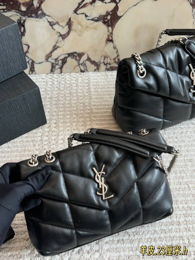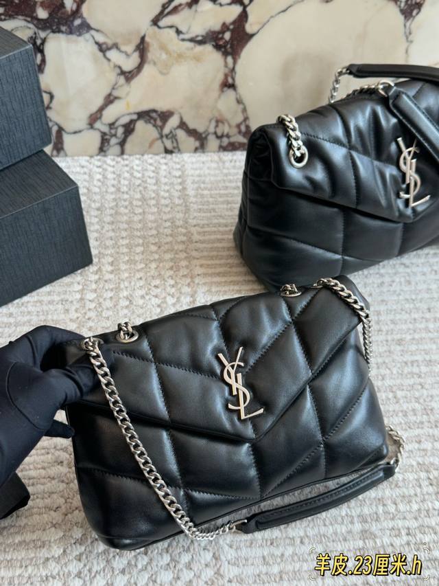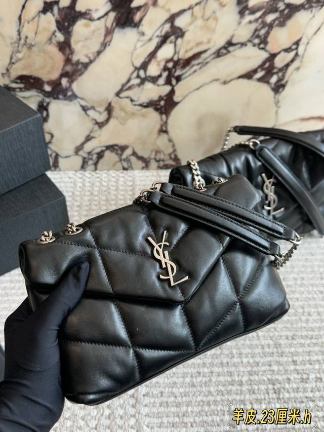 Lambskin bag with box. Size: 29*22cm (Large), 23*16cm (Small). YSL Cloud Bag, Loulou Puffer, Quilted Lambskin Bag. A feeling like holding a cloud.