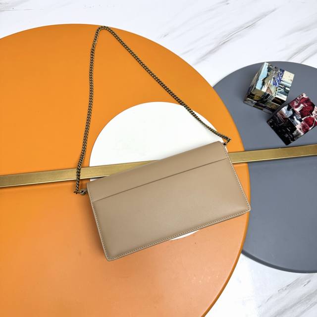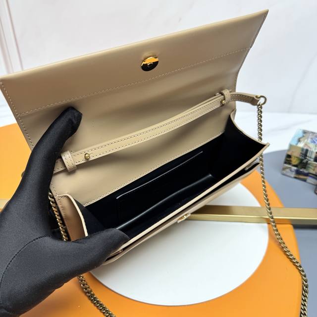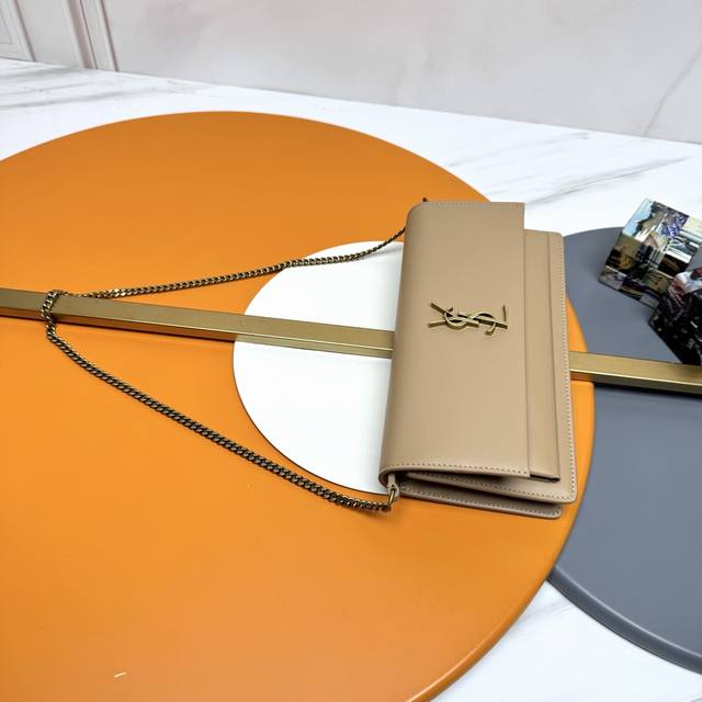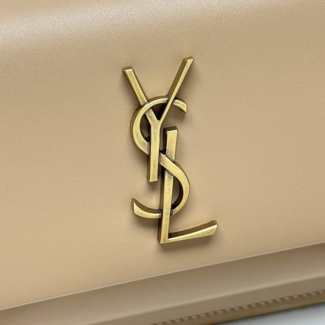 Authentic Grade YSL Apricot Antique Gold Leather, Original Factory Leather, Premium Supply. New Arrival: YSL's New Sunset Box Clutch Bag, Can Also Be Carried Under the Arm! Classic Sunset Box leather clutch bag, adorned with the iconic Cassandre. This soft and practical handbag features a foldable chain strap, allowing it to be worn over the shoulder or as a clutch bag