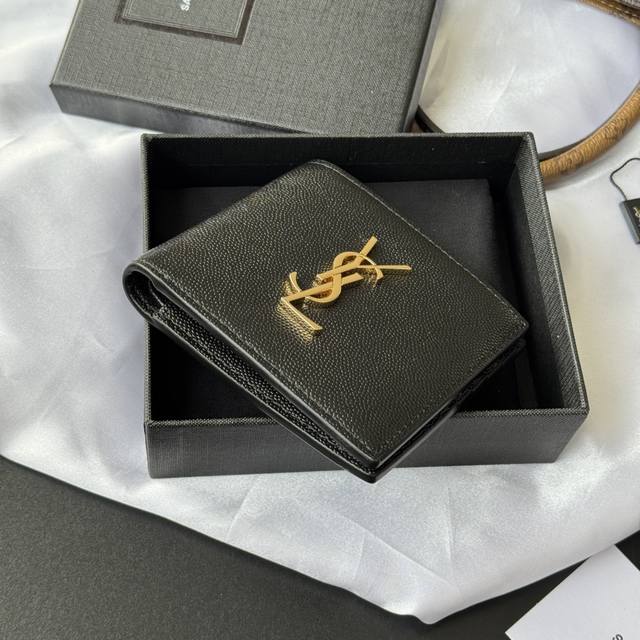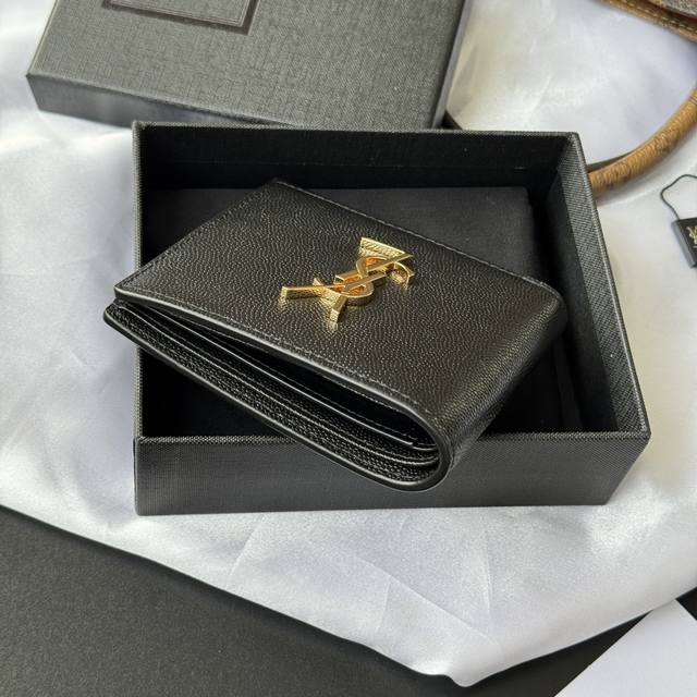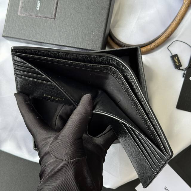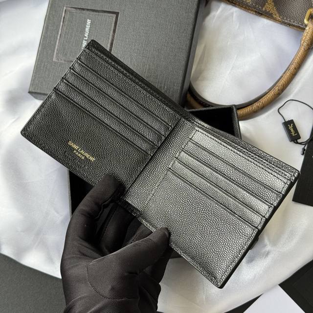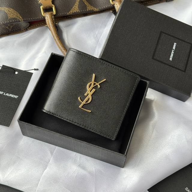 Authentic YSL Men's Wallet, Monogram Bi-fold Wallet with Card and Bill Storage, adorned with a metal YSL logo. Interior: Two bill compartments, eight card slots, and two receipt compartments. Model: 453276. Dimensions: 11*9.5*2.5cm.