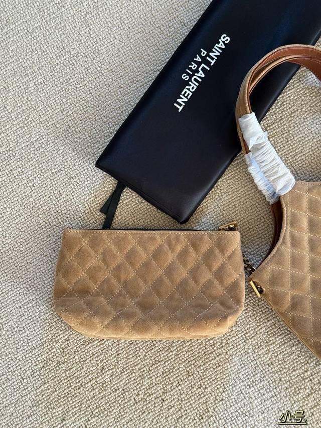 Retro diamond lattice and huge logo hardware are bright and atmospheric