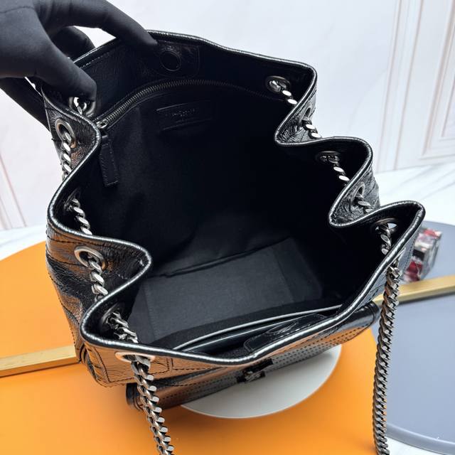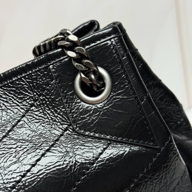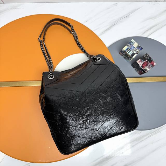 Cowhide Leather with Silver Buckle (Ddd) Oil-waxed Leather with Silver Buckle (Ddd) YSL Vintage Oil-waxed Calfskin Shopping Bag. Continuing the Niki style, this bag features a wrinkled oil-waxed calfskin logo. This lightweight and practical tote bag has a front pocket and sliding chain strap. The interior has a zippered compartment and an open slip pocket for your phone, coins, and cards, making it easy to access. The bag is very lightweight yet has a large enough capacity, making it extremely practical. Suitable for shoulder and crossbody wear. (Ddd Model: 862295, Original Leather, Ddd Dimensions: 25X30X8-12Cm)