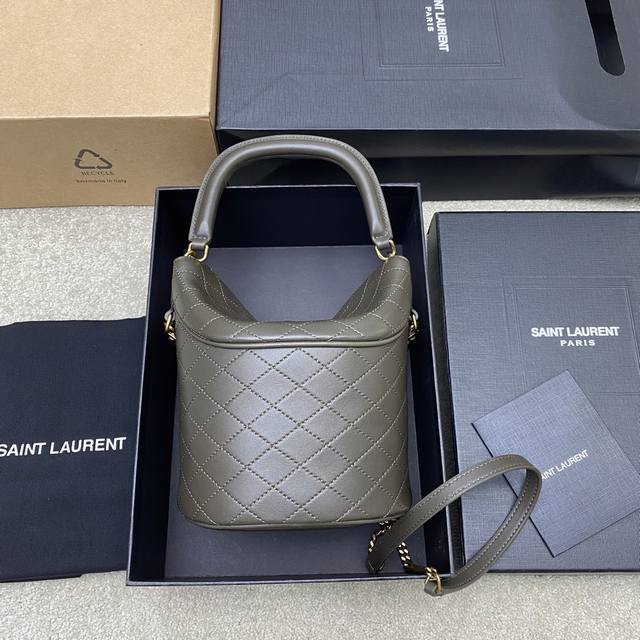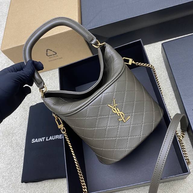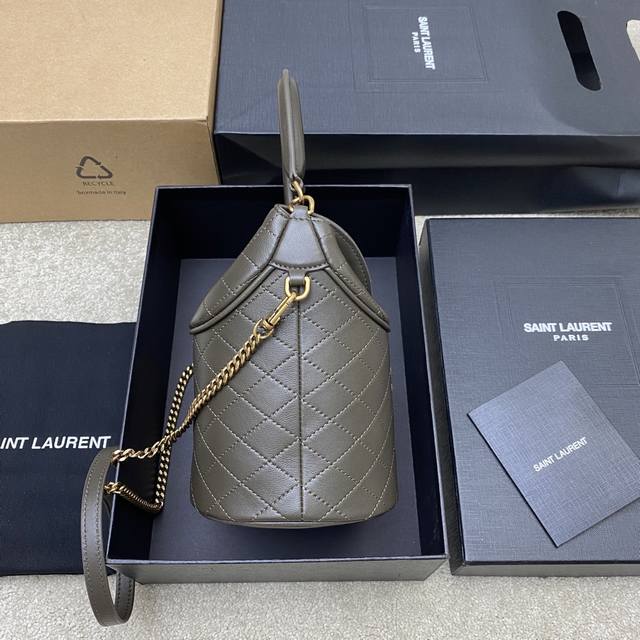 Original Leather DDD Green Lambskin Gold DDD YSL Gaby Series New Bucket Bag Made of All-Lambskin, Super Exquisite and Cute, and Very Lightweight. Top flap design, enhancing privacy and security. Top handle and detachable chain shoulder strap offer multiple carrying options, suitable for various occasions. So beautiful! DDD Model: 763971 Original Leather DDD Dimensions: 19X17X15Cm DDD