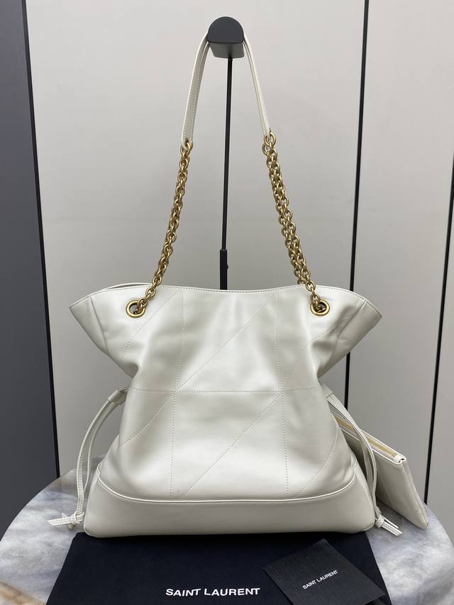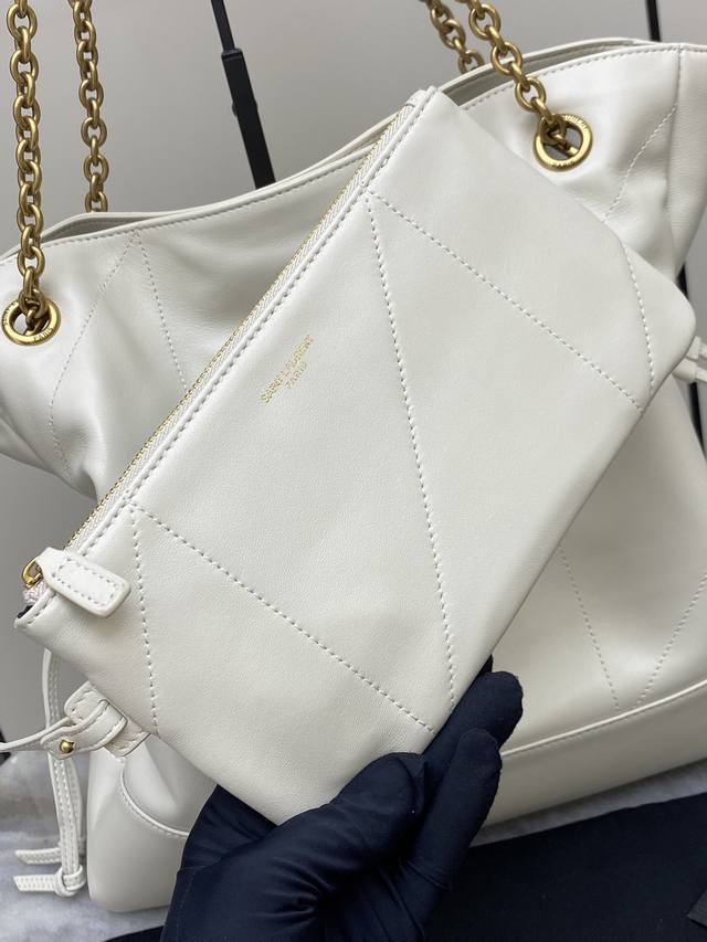 Original Leather DDD White Lambskin Antique Gold DDD Newly Upgraded YSL Jamie 4.3 Large Pochon Lambskin Shoulder Bag DDD The designer really understands what consumers need! Many tote bag designs can't achieve both good looks and practicality, but! This tote does! It's lightweight, spacious, and very elegant! It's a practical tote with a stylish design and a touch of luxury DDD I think it looks better than the 22 Bag, is that fair? DDD It's also a great mom bag for elegantly carrying your child DDD Model: 809824 Original Leather DDD Size: 35X35X10Cm DDD