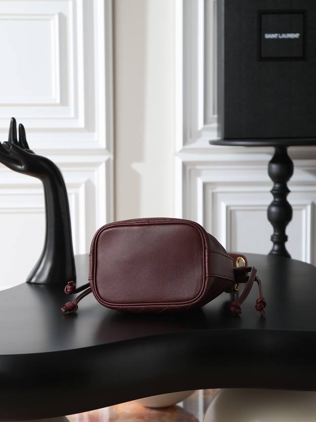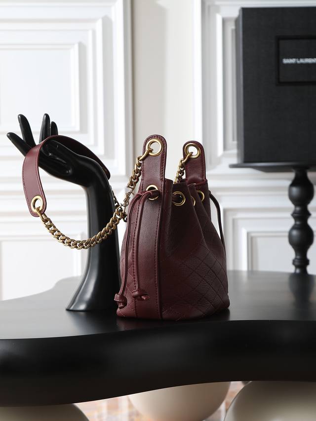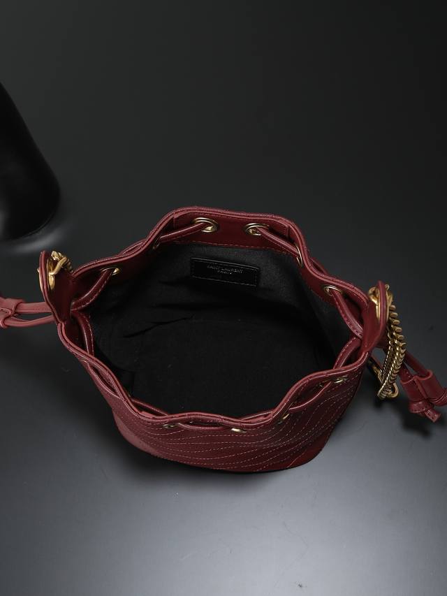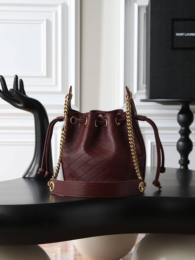 YSL New Mini Bucket Bag DDD From Saint Laurent Le Cassandre Lambskin Leather Bucket Bag DDD Quilted lambskin bucket bag, with Le Cassandre jewelry chain shoulder strap for easy shoulder carrying DDD Cute bag, don't miss it DDD Leather lining DDD Lambskin brass DDD Bronze hardware drawstring closure DDD Dimensions: 16 x 18 x 10 cm (6.3 inches x 7.1 inches x 3.9 inches). Shoulder strap length: 40 cm (15.7 inches) DDD Lambskin brass DDD Style number: 840886 DDD Made in Italy DDD