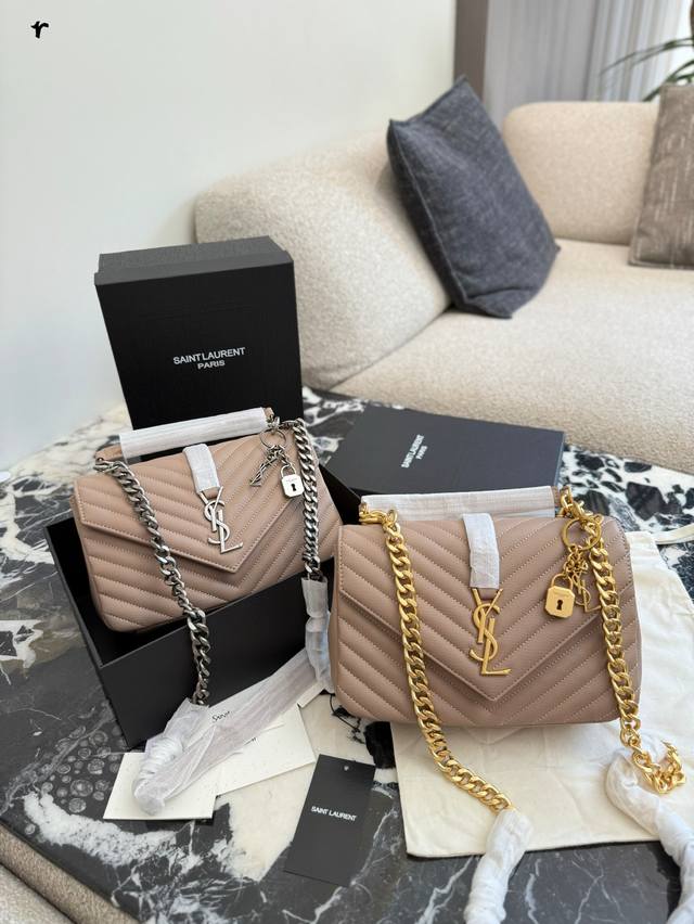 The Saint Laurent College Black and Gold Messenger Bag is crafted from soft lambskin with a gold logo, creating a stunning and comfortable look.