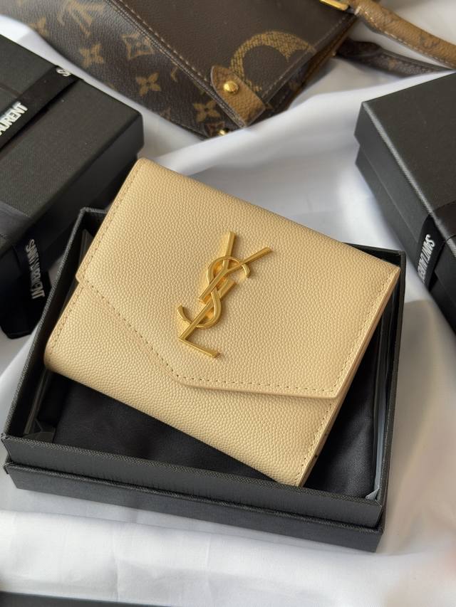 Ysl New Three-Fold Wallet In Caviar-Colored Apricot