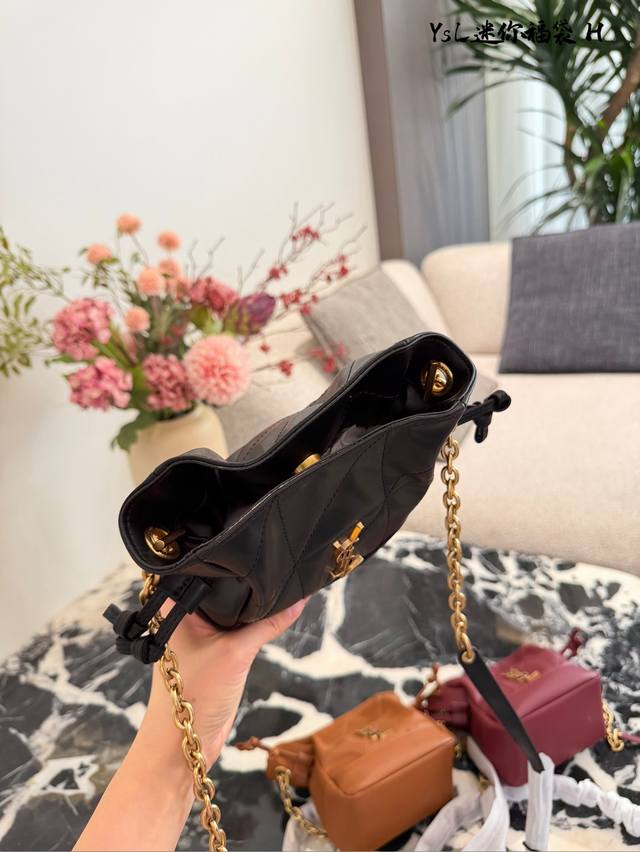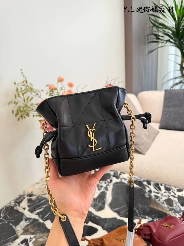 YSL Jamie Lucky Bag DDD The YSL Jamie lucky bag features a gold YSL logo, making it highly recognizable. It has drawstring closures on both sides for versatile styling, and an adjustable shoulder strap for both shoulder and crossbody wear. Mini size 16cm DDD Suitable for both work and casual occasions. The interior is well-designed, practical, and stylish. A classic and popular YSL design, a must-have for fashionistas. DDD