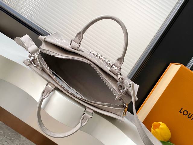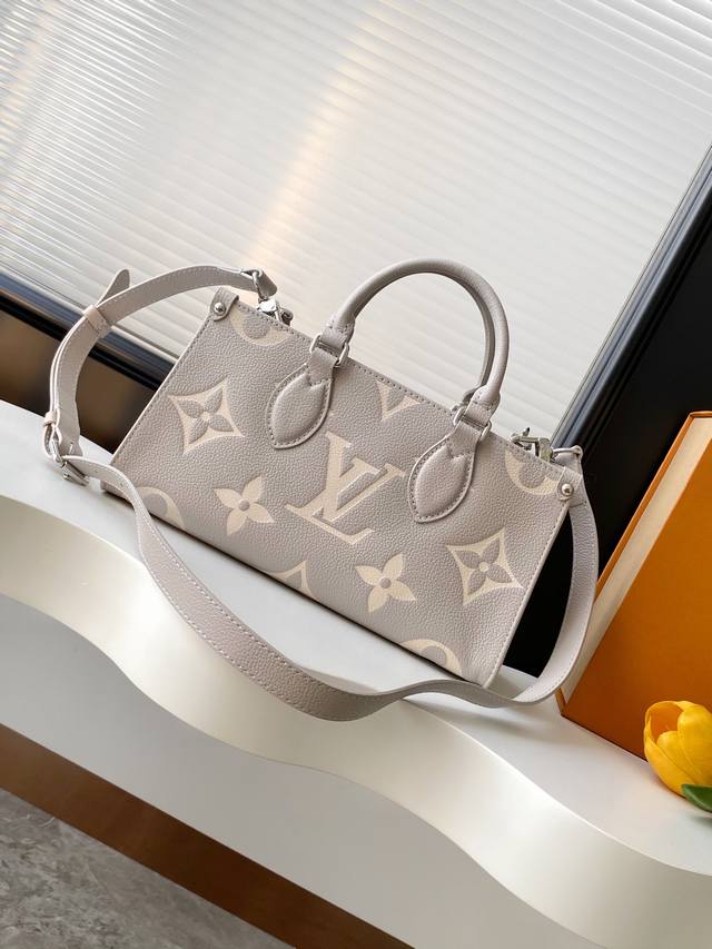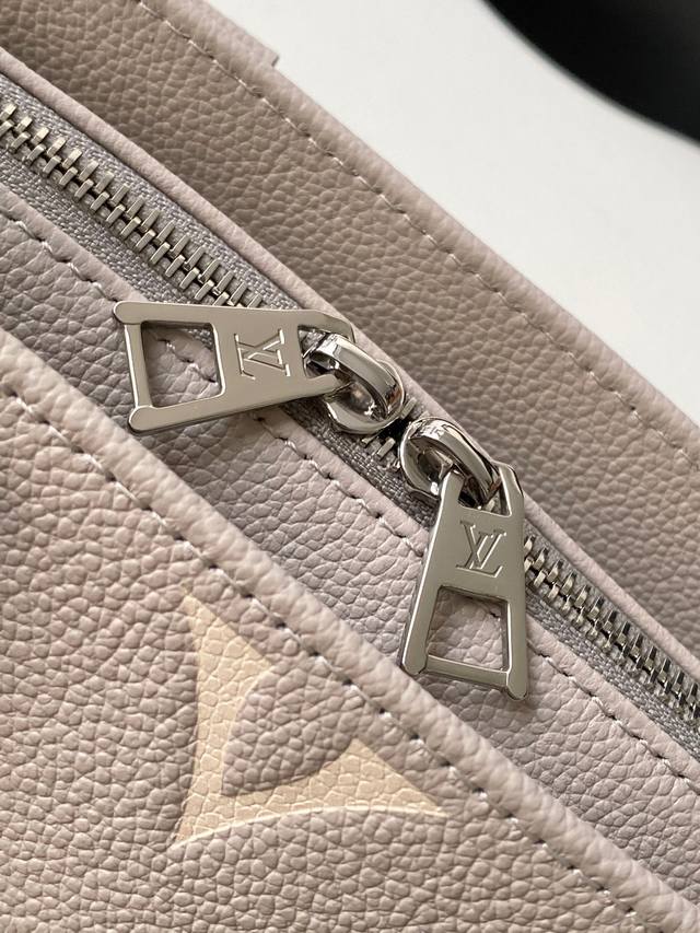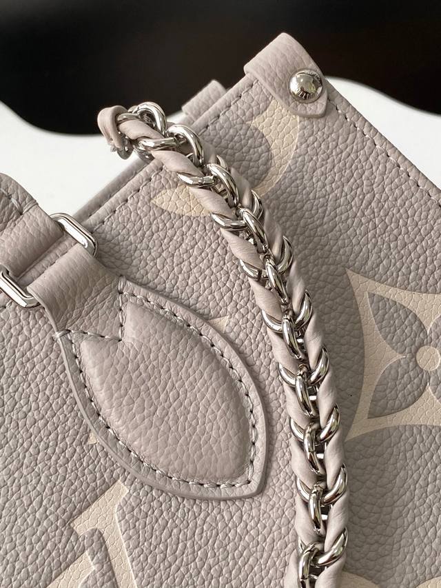 This Neverfull Mm handbag reinterprets the classic Monogram Empreinte leather with the same color aesthetic. The Neverfull is a spacious bag with side laces that can be tightened for a sleek seduction or relaxed for a casual look. There is a detachable bag inside that is fastened to the bag with a leather cord.