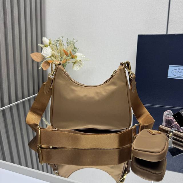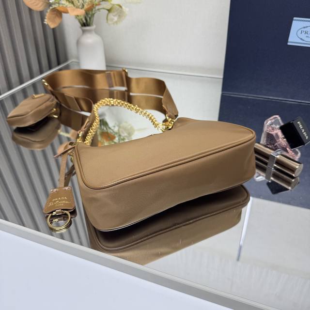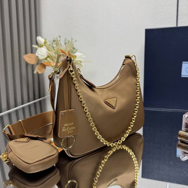 The Top Original Prada New Nylon Hobo Hand-Held Gold Hardware Underarm Bag. The Popular Hobo In The Fashion Circle Has A New Model. The Design Of This Hobo Bag Is Amazing. It Can Be Used As A Waist Bag, A Crossbody Bag, Or A Single-Body Bag. The Handle Is Replaced With A Chain To Make It An Underarm Bag, Which Adds A Touch Of Sexiness. It Is Also Equipped With A Long Shoulder Strap. What I Like Most Is That There Is A Small Ornament Hanging On The Shoulder Strap. The Small Bag Can Also Be Hung On Other Bags And Trousers As An Ornament To Match With Various Clothes. It Can Be Matched With Various Clothes. Hurry Up And Get It. It Is So Beautiful. Model 1Bh204 Size Length 22X Height 12X Bottom 6Cm
